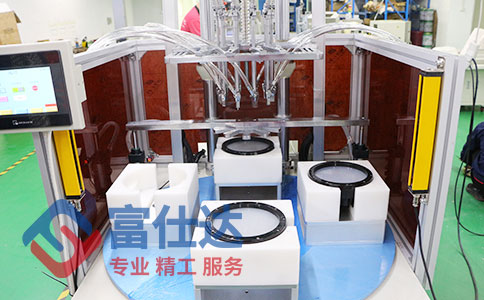 2、多軸自動鎖螺絲機是根據工件鎖螺絲位置,排好多個鎖螺絲頭,當工件由治具固定好位置后,多軸同時一起鎖螺絲,不管有多少軸,打螺絲的周期跟鎖一顆螺絲是相同的。